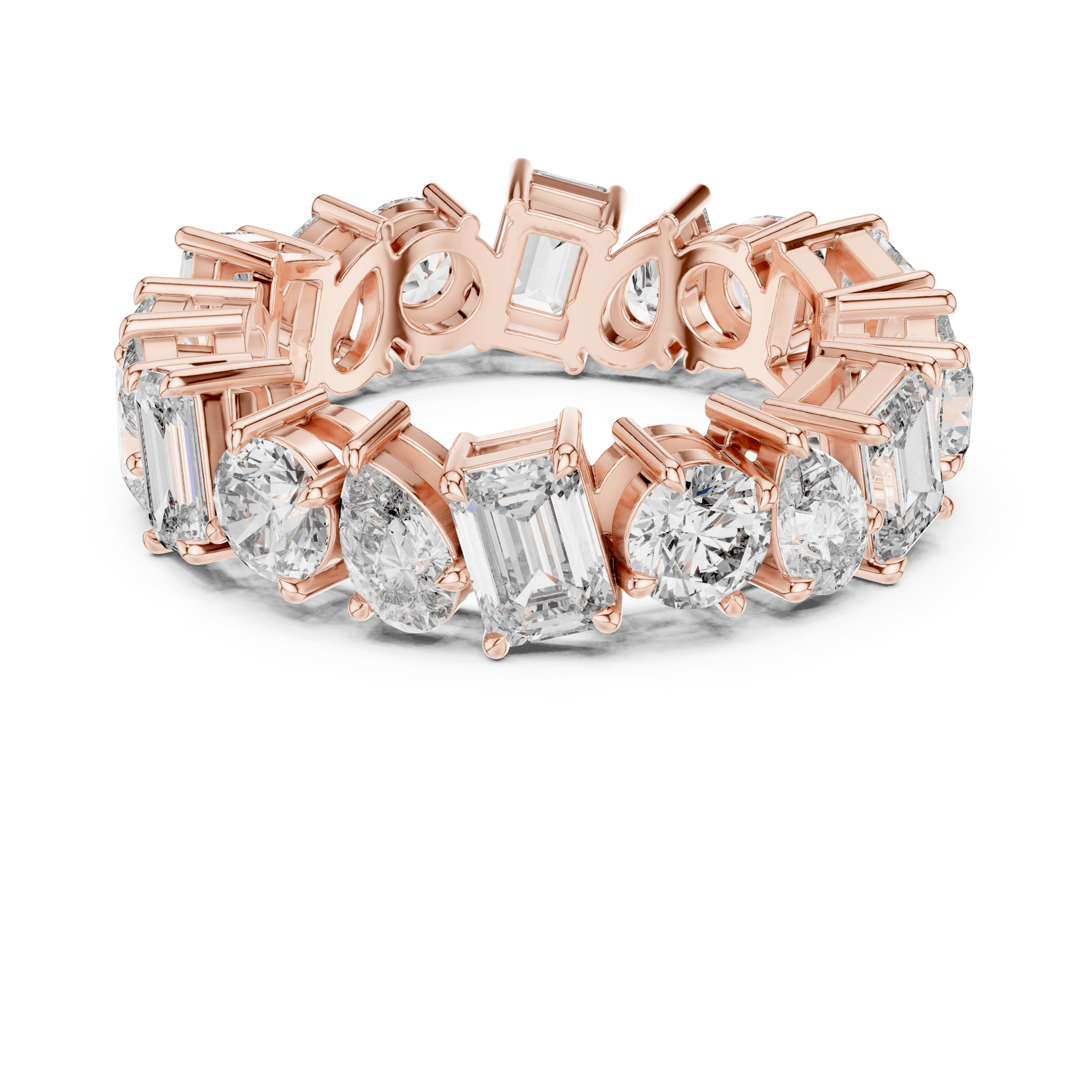 Luxury Mixed-Cut Diamond Full Eternity Ring in 18K Rose Gold | Pear, Emerald & Round Diamonds
