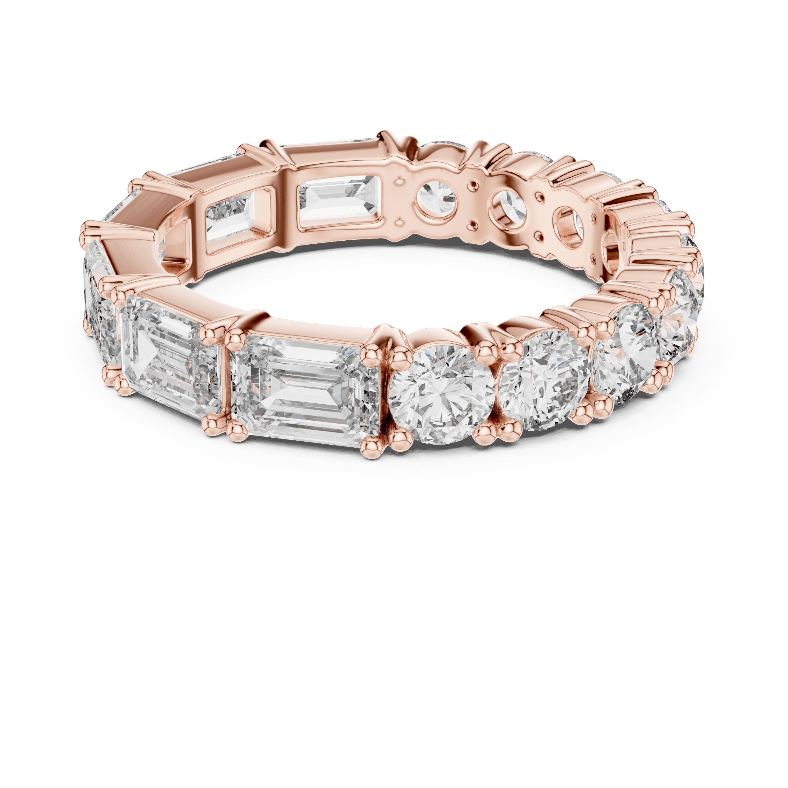 Emerald & Round Diamond Eternity Ring | Elegant Emerald Cut Diamond Band
